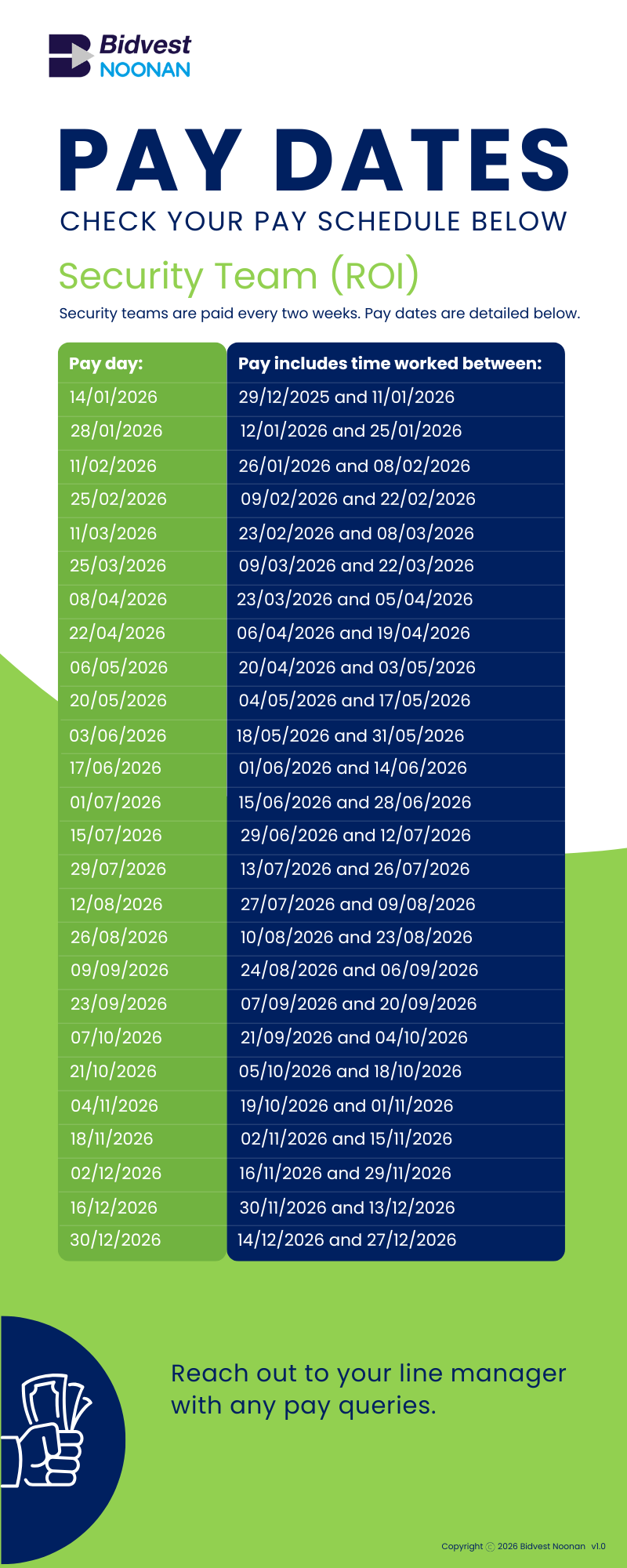 In the UK, we screen under standard BS7858. In the ROI, we screen as per PSA (Private Security Authority), and the National Vetting Bureau (Garda Criminal Record Checks).